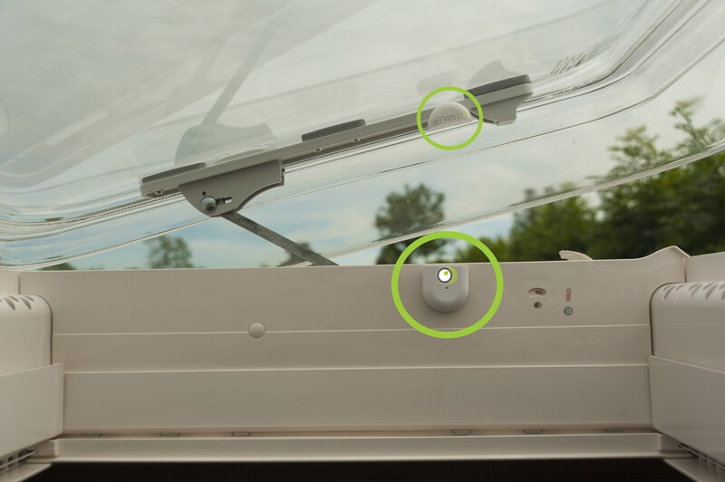 Eine offene Dachluke oder ein offenes Fenster beim Losfahren, das passiert Ihnen mit dem E-Switch-Modul von E-Trailer nicht mehr. Der Funksensor meldet dies sofort mit einer Benachrichtigung auf Ihrem Smartphone. Sie können rechtzeitig anhalten, bevor etwas beschädigt wird. Schäden an einer offenen Dachluke oder einem Fenster gehören damit der Vergangenheit an. Die E-Switch-Sensoren können sind auch für Türen von Stauraum oder Heckgaragen geeignet.