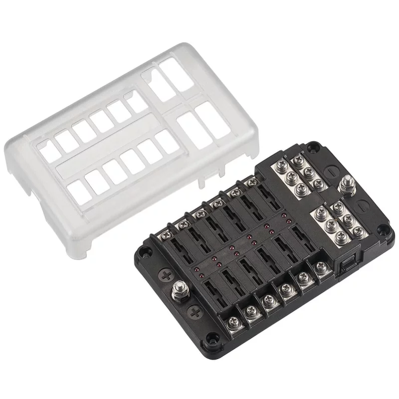 Die Produktpalette umfasst Sicherungen, Sicherungskästen, Stromverteilerschienen, Schalter, Kabel, Einbaubuchsen und Konsolen sowie Messgeräte– alles, was für einen sicheren und ordentlichen Systemaufbau benötigt wird.