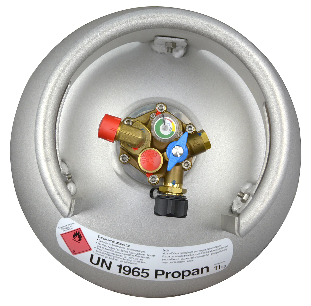 Die Flasche ist mit einem Multiventil sowie einem automatischen 80%-Füllstopventil ausgestattet, das den Füllvorgang automatisch bei Erreichen des zulässigen Füllstands unterbricht. Die Außenbetankung erfolgt über einen HK-Flachanschluss mit europäischem Füllset – kompatibel mit ACME, Bajonett, Dish und Nozzle – und ermöglicht so das unkomplizierte Betanken an Gastankstellen quer durch Europa.