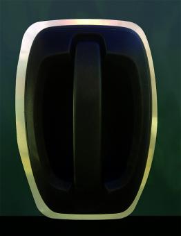 Die Stechschutzplatte ist aus Edelstahl gefertigt und passt sich den Konturen der Griffschale an. Befestigt wird die Stechschutzplatte mit den in der Tür vorhandenen Befestigungspunkten der Griffschale. Es müssen keine zusätzlichen Löcher in die Tür gebohrt werden. Da die Platte gut sichtbar ist, wird der Abschreckungsfaktor nochmals erhöht.
